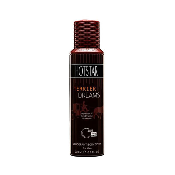 اسپری مردانه هات استار مدل تق هرمس (Terrier Dreams) دارای رایحه تلخ و معتدل، فراتر از یک اسپری عمل می کند با بیش از 48 ساعت ماندگاری. هات استار اسپری تریر دیریمز رایحه ای شبیه عطر HERMES – Terre d’Hermes تق هرمس دارد.