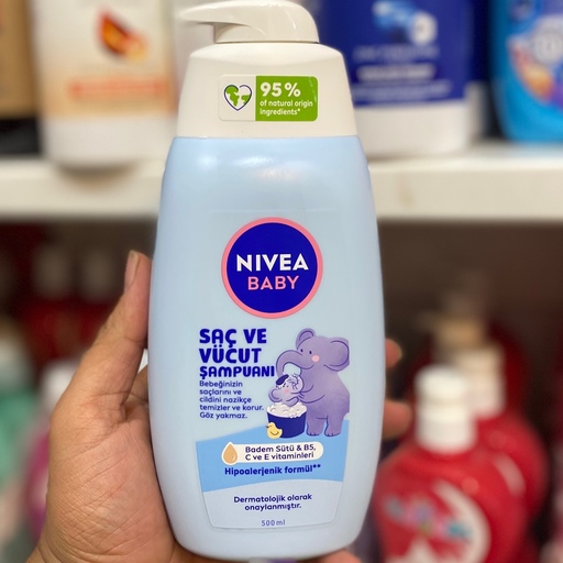 فاقد الکل فاقد پارابن ضد حساسیت حاوی شیر بادام حاوی روغن بادام فرمول بدون اشک حاوی ویتامین ای E دارای آزمایش بالینی حاوی ویتامین سی C کاملا وگان و مواد طبیعی حفظ رطوبت پوست کودک فرمول سازگار با pH پوست مخصوص شستشوی سر تا پا فاقد هرگونه مواد مضر برای پوست مناسب پوست خشک ،معمولی و حساس کودکان با شیر بادام 100% طبیعی و ویتامین های B5، C و E. تست شده و تایید شده توسط مادران و متخصصان اطفال.. حاوی عصاره بابونه و کاملاً گیاهی محصول کمپانی نیوآ آلمانی تولید شده در ترکیه نحوه استفاده ابتدا پوست نوزادتان را با اب ولرم خیس کنید و سپس مقدار مورد نیاز از شامپو بچه نیوآ را به سر و بدن کودکتان ماساژ دهید تا کف کند و سپس ابکشی کنید و شاهد نرمی و طراوت پوست نوزادتان شوید.