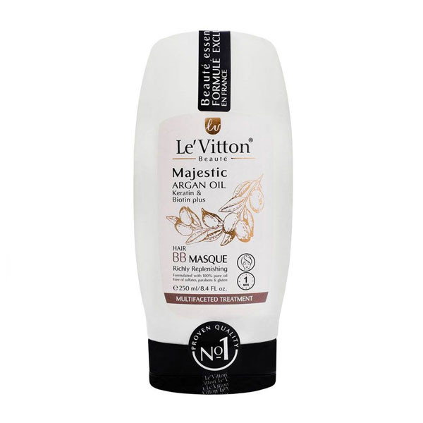 ماسک مو مغذی لویتون مدل BB Masque مخصوص موهای آسیب دیده یک ماسک چندکاره ترمیمی و مغذی است که حاوی روغن خالص آرگان مراکشی، کراتین هیدرولیز شده و بیوتین می باشد. استفاده از ماسک مو لویتون باعث تقویت و افزایش درخشندگی موها، کاهش شکستگی مو و نرمی و لطافت موهایتان می شود.